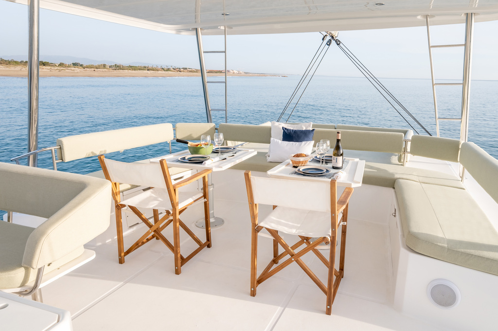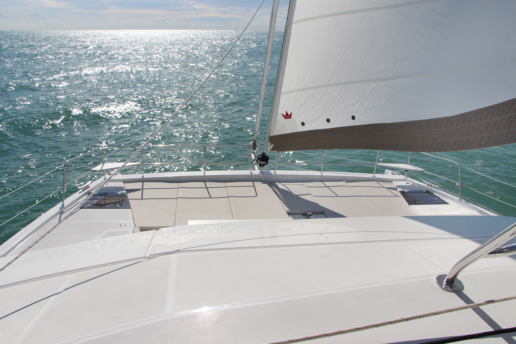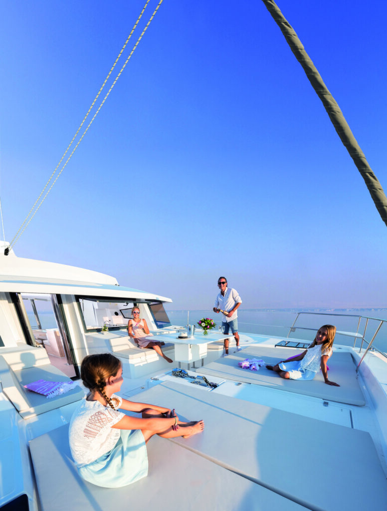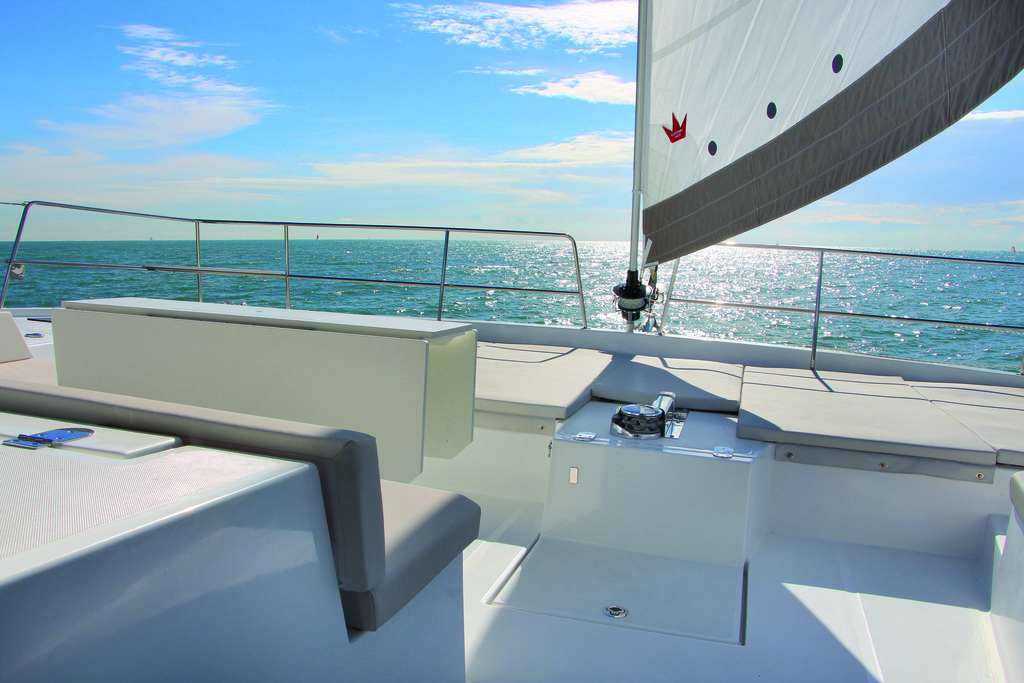 BALI zapewnia mnóstwo miejsca na pokładzie. Na dziobie zamiast siatek znajdują się materace słoneczne, które wraz ze stołami tworzą strefę wypoczynkową.