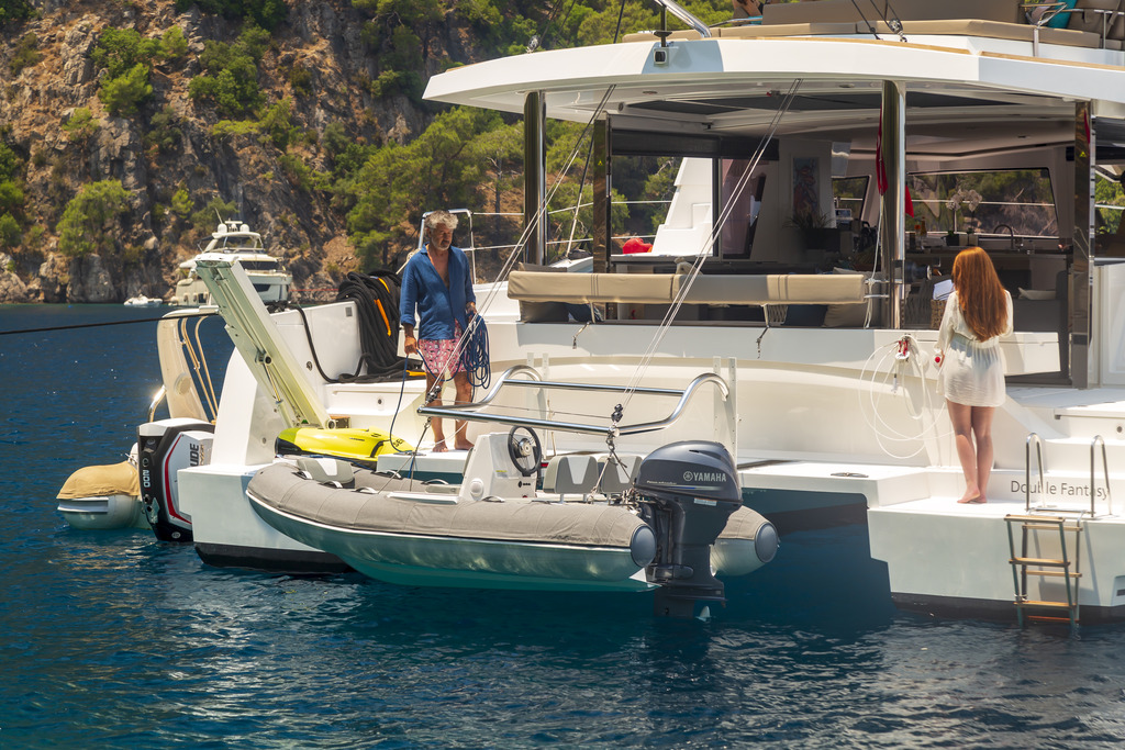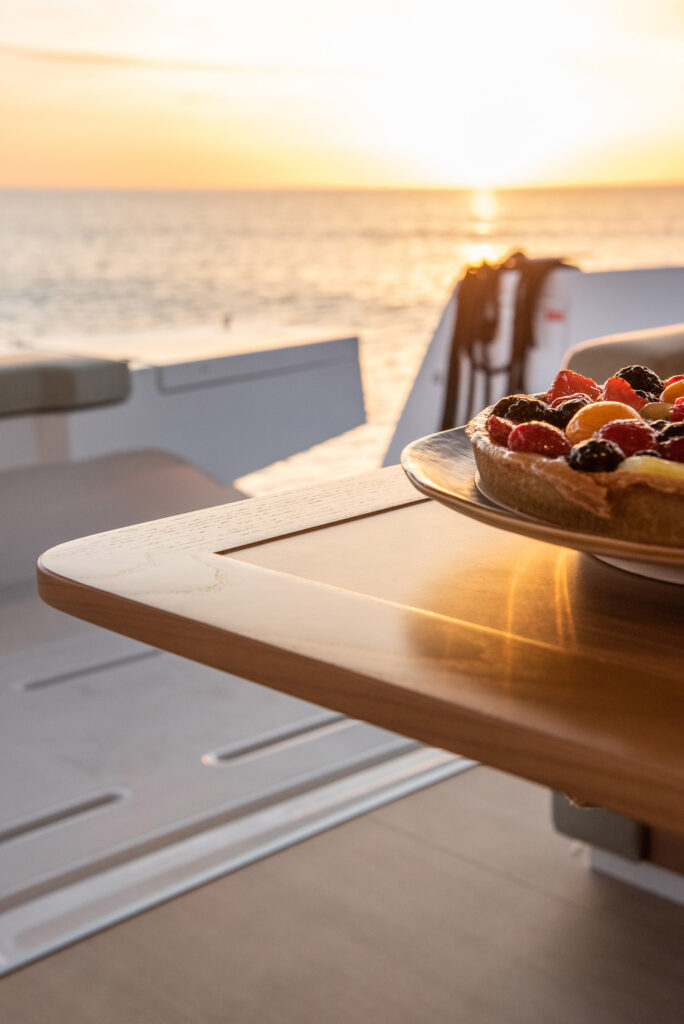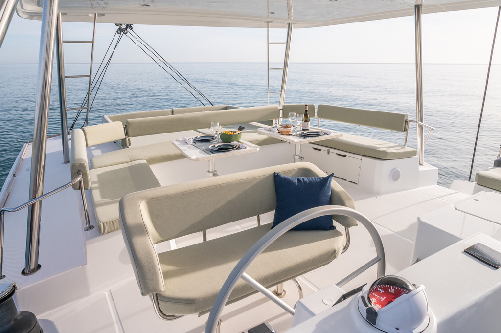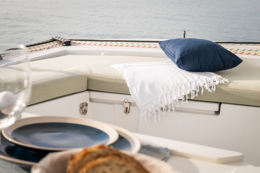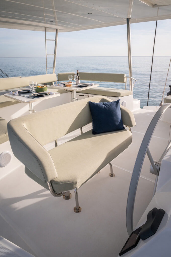 BALI zapewnia mnóstwo miejsca na pokładzie. Na dziobie zamiast siatek znajdują się materace słoneczne, które wraz ze stołami tworzą strefę wypoczynkową.