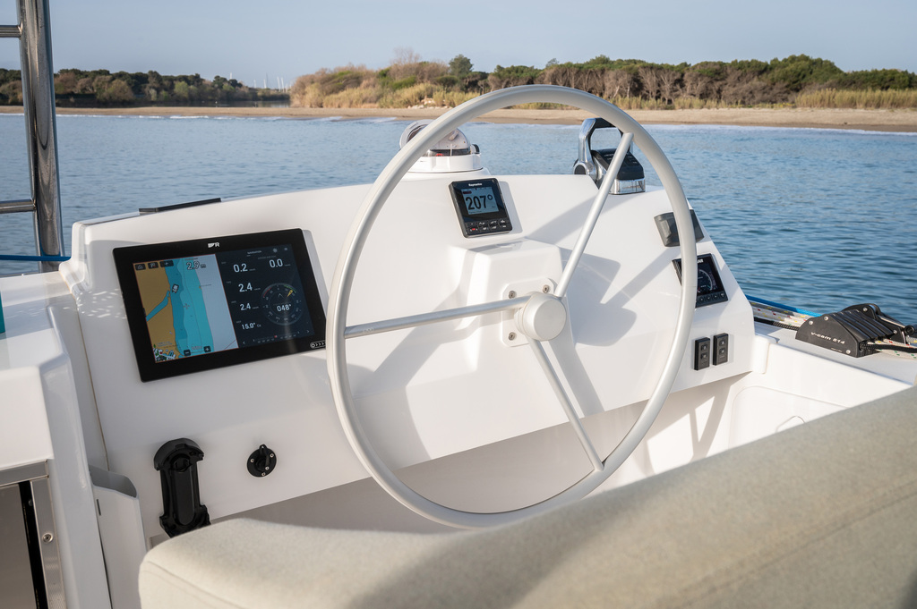 Katamarany BALI mają wydzielone stanowisko dla skippera, które zapewnia mu znakomitą widoczność. Stamtąd operuje nawigacją, sterem, manetkami i nie tylko.